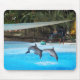 Two dolphins throwing their trainer into the air, Spain by Helen A. Lisher.