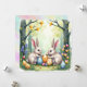 Two little gray Easter Bunnies sort out the eggs to hide along a forest path lined with spring flowers. Very cute, would be fun for kids.