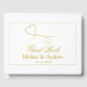 NewParkLane - Elegant personalised wedding guest book, with two faux gold swirly hearts, against a white background, and with elegant script typography.