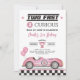 Two Fast 2 Curious Pink Vintage Car Girl Birthday Invitation