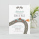 Two Fast Race Car 2nd Birthday Invitation with blue retro race car.