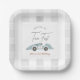 This cute and retro "Two Fast" boy's 2nd/second birthday paper plate features a white background with a light blue race car. Personalize it for your needs. You can find matching products at my store