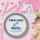 Two Fast Blue Race Car Second Birthday Paper Plate