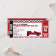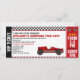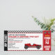 Two fast car race ticket 2nd birthday invitation designed as a VIP admission ticket featuring a classic red race car and chequered flag.