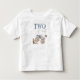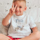 The t-shirt is designed for a 2-year-old birthday boy, it has a dusty blue monster truck the word "Two" is written in bold, stencil-like font. The shirt is perfect for the little one to wear on his birthday party, or to playdates with friends and family. It will make him feel special and bring a big smile to everyone's face.