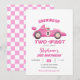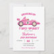 Two Fast Pink Vintage Racing Car Second Birthday Invitation