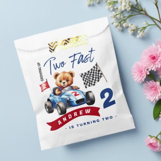 Celebrate your little one's second birthday in style with this adorable race car themed birthday sticker! The design showcases a charming teddy bear cruising in a race car adorned with the number 2, zooming along race tracks. With trendy typography spelling out "growing up too fast," along with all the essential party details, this sticker sets the perfect tone for a fun-filled celebration.