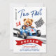 Celebrate your little one's second birthday in style with this adorable race car themed birthday invitation! The design showcases a charming teddy bear cruising in a race car adorned with the number 2, zooming along race tracks. With trendy typography spelling out "growing up too fast," along with all the essential party details, this invitation sets the perfect tone for a fun-filled celebration.