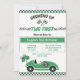 Cute "Growing up Two Fast" 2nd birthday race car invitation in green and grey. Customise invitation with your child's name, date, time and location of party.