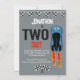 TWO fast racecar-themed 2nd birthday party invitations. Fun racing cars for a child's second birthday party.