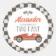 Two Fast red Race Car Birthday Classic Round Sticker