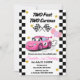 Two Fast Two Curious Pink Race Car 2nd Birthday Invitation