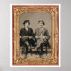 The Bancroft Library Presents: Full length portrait of two men, seated in wooden chairs next to each other, holding violins and wearing hats and boots. Portrait by unknown artist, 1865-1870.