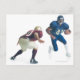 AssetID: rbs1_52 / {Photodisc} / two football players from opposing teams are running towards each other as one holds the football and the other crouches forward to stop him