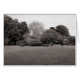 A wide angle park landscape photo in warm toned black and white taken at Bute Park, Cardiff, Wales showing an attractive variety of different trees, there are also two little Magpies on the grass, which although they are quite small show up nicely in what is very detailed DSLR photo and giving the image a kind of timeless classical feel.
