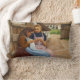 Two Girls With Needlework Sitting in a Farmyard Lumbar Cushion
