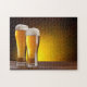 Two glasses of beers on a wooden table. Dark yellow background. © and ® Bigstock® - All Rights Reserved.
