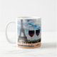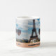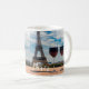 Two glasses of wine on Eiffel tower and Paris skyline background.
