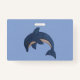 Two Glittery Jumping Dolphins Dark Blue White ID Badge