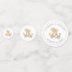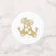 Custom table confetti pieces with gold anchors for a wedding. Paper confetti comes in three sizes with images / text on both sides. Include names of the couple with date of event on the largest pieces. The rest have the gold ship's anchor design only.