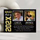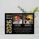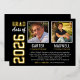 Announce your two high school graduates in style with this real foil graduation announcement and party invitation. Card is designed for two grads and features their photos with a simple and masculine design with sports jersey inspired lettering. Black, gold foil, and white colours.
