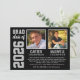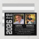 Announce your high school graduates in style with this graduation announcement and party invitation. Two-sided card is designed for two grads and features their photos with a simple and masculine design with sports jersey inspired lettering. Black, silver grey, and white colours can be customised to match your school colours. A pattern of white stripes dresses up the back of the card.