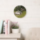 Two grey swans on the lake photography designed on Large Round Wall Clock with hour and minute dials. Available medium and small and square clocks with this image.