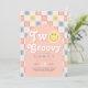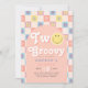 This groovy girls' 2nd birthday invitation captures retro 70s vibes with a cute pink theme, floral accents, and a pastel chequered pattern. Fully customisable, it includes space for your party details in elegant script. Perfect for a "Two Groovy" boho birthday, this playful, girly design adds charm to your little one's special day!