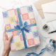 This groovy girls' wrapping paper captures retro 70s vibes with a cute pink theme, floral accents, and a pastel chequered pattern. Perfect for a "Two Groovy" boho birthday, this playful, girly design adds charm to your little one's special day!