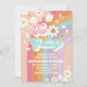 Celebrate your little ones special day with this retro-inspired "Two Groovy- birthday invitation! Featuring pastel rainbow colours, cheerful daisies, butterflies, peace signs, and a smiling flower, this design captures the fun and free-spirited vibe of the 1960s and 70s. Perfect for a girls second birthday party, this playful boho invitation sets the tone for peace, love, and joy. Customise with your party details and make your childs milestone celebration unforgettable.