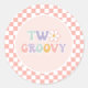 Two Groovy Pink Daisy Chequered Classic Round Sticker