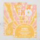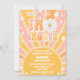 Celebrate your little ones special day with this vibrant retro birthday invitation featuring bold pink, orange, and yellow rays, playful peace signs, flowers, and stars. The whimsical "TWO GROOVY- design with a daisy accent adds a fun, nostalgic touch perfect for a 2nd birthday party. This customisable invite is ideal for parents seeking a unique, eye-catching card that captures the spirit of peace, love, and fun. Personalise with your childs name, party details, and RSVP information to create a memorable keepsake guests will adore.