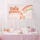 Retro Rainbow two groovy 2nd birthday party banner with boho daisies.