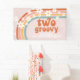Retro Rainbow two groovy 2nd birthday party banner with boho daisies.
