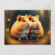 Introducing the newest addition to your postcard collection - two hamsters in love, frolicking in the lush summer forest! These adorable little creatures will steal your heart with their playful antics and undeniable cuteness. The serene beauty of the forest makes the perfect backdrop for this love story in the making. Whether you're sending a sweet message to a loved one or just collecting cute and quirky postcards, this one is sure to make you smile. It's the perfect way to show someone you care or to brighten up your own day. Don't miss out on the opportunity to add a touch of love and joy to your postcard collection - grab one today!