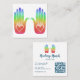 Illustrated with two peaceful rainbow hands. Perfect business card for massage therapists, yoga teachers, healers and others who want a healing, peaceful vibe.