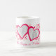 Show your love with this 2 hearts first wedding anniversary mug. Add your own photos, words or special date for a personal touch. Would also make a great gift filled with chocolates or as a great way to disguise a special small gift such as a necklace, ring or earrings. Exclusively designed by Sarah Trett.