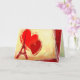 Eiffel tower of Paris France with two huge hearts and colourful background design. Perfect for the couple celebrating in Paris, France whether it's for a wedding, anniversary, engagement or other special occasion.