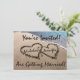 "You're Invited!" in stylish text, or easily change the wording to these popular wedding invitations. A beautiful, original professional photograph of two hearts written, drawn in the sand along the blue ocean water to signify love and romance. Easily insert the bride and groom's name in each heart as shown, and the date below them. Put your custom text and details and information on the back of this popular invitation. Great concept for upcoming summer engagements, destination beach weddings, anniversaries, or save the date invites and announcements for the happy couple.