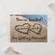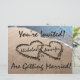 "You're Invited!" in stylish text, or easily change the wording to these popular wedding invitations. A beautiful, original professional photograph of two hearts written, drawn in the sand along the blue ocean water to signify love and romance. Easily insert the bride and groom's name in each heart as shown, and the date below them. Put your custom text and details and information on the back of this popular invitation. Great concept for upcoming summer engagements, destination beach weddings, anniversaries, or save the date invites and announcements for the happy couple.