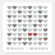Trendy dusty blue, grey and slate colour palette features a contemporary grid of hearts surrounding the two special red hearts that represent the bride and groom. A modern wedding design, with a contemporary blend of format and typography for styling that is simple, yet striking. Coordinating items in the "Two Hearts" collection include invitations, reception cards, rsvp cards, stickers, labels and favour tags.