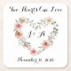 Two Hearts One Love Pink Cream Roses Square Paper Coaster