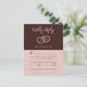 The Two Hearts Red Attendance Preference RSVP Card to complete your wedding stationery. Featuring two hearts intertwined beneath the title "Kindly Reply," this RSVP postcard is part of the Hearts Intertwined Wedding Collection, which showcases a minimalist design in Dark Sienna red and Dust Storm Pink. The template includes details for guests to RSVP by a specified date, declare the number of attendees, note any dietary requirements, and select their favourite dance-inviting music. On the return side the couple's address is already present and space to add a personalised message. Explore the entire collection for a cohesive wedding stationery suite. For further wedding planning inspiration, visit www.KBMD3signs.com. For custom design enquiries or assistance, reach out to us at info@KBMD3signs.com.