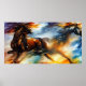 Two horses galloping modern abstract art poster