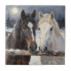 Two Horses on a Snowy Farm Under the Moon Ceramic Tile