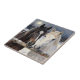 Tile with an illustration of two horses on a snowy winter ranch with a full moon in back of them standing behind an old rustic fence.