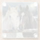 Coasters with an illustration of two horses on a snowy winter ranch with a full moon in back of them standing behind an old rustic fence.