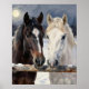 Two Horses on a Snowy Farm Under the Moon Poster