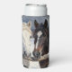 Two Horses on a Snowy Farm Under the Moon Seltzer Can Cooler