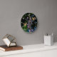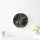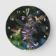 Two beautiful hummingbirds flying with purple flowers wall clock